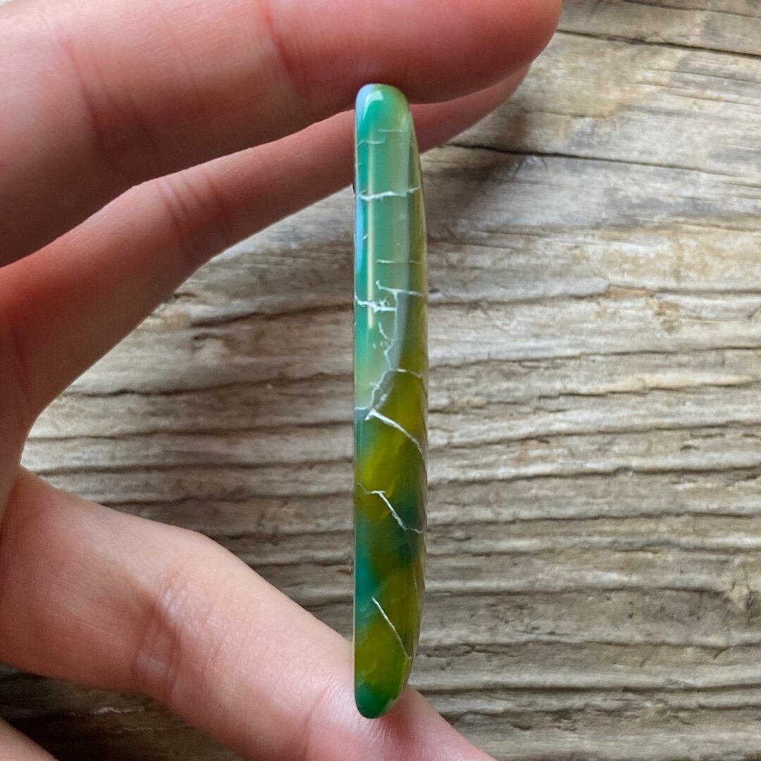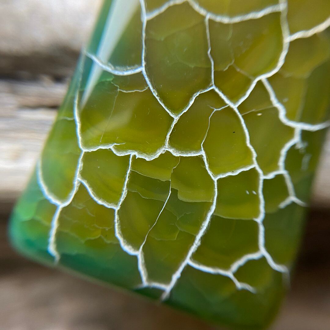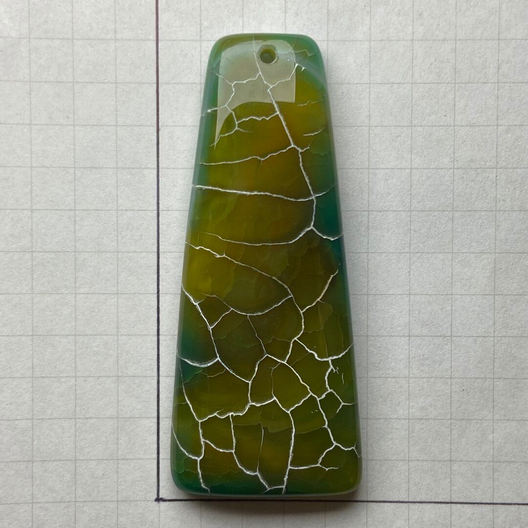 こちらのアゲートの模様は、竜の鱗の様に見えることから『ドラゴンベイン』や『ドラゴンヴェインズ』と呼ばれるクラック加工がされており、カラフルな色味は染色によるものです。