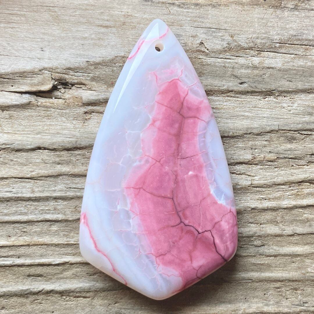 こちらのアゲートの模様は、竜の鱗の様に見えることから『ドラゴンベイン』や『ドラゴンヴェインズ』と呼ばれるクラック加工がされており、カラフルな色味は染色によるものです。