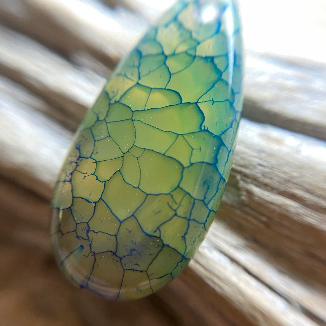 こちらのアゲートの模様は、竜の鱗の様に見えることから『ドラゴンベイン』や『ドラゴンヴェインズ』と呼ばれるクラック加工がされており、カラフルな色味は染色によるものです。