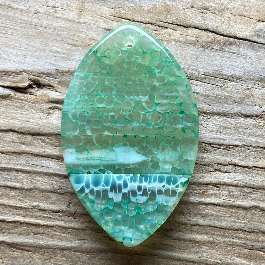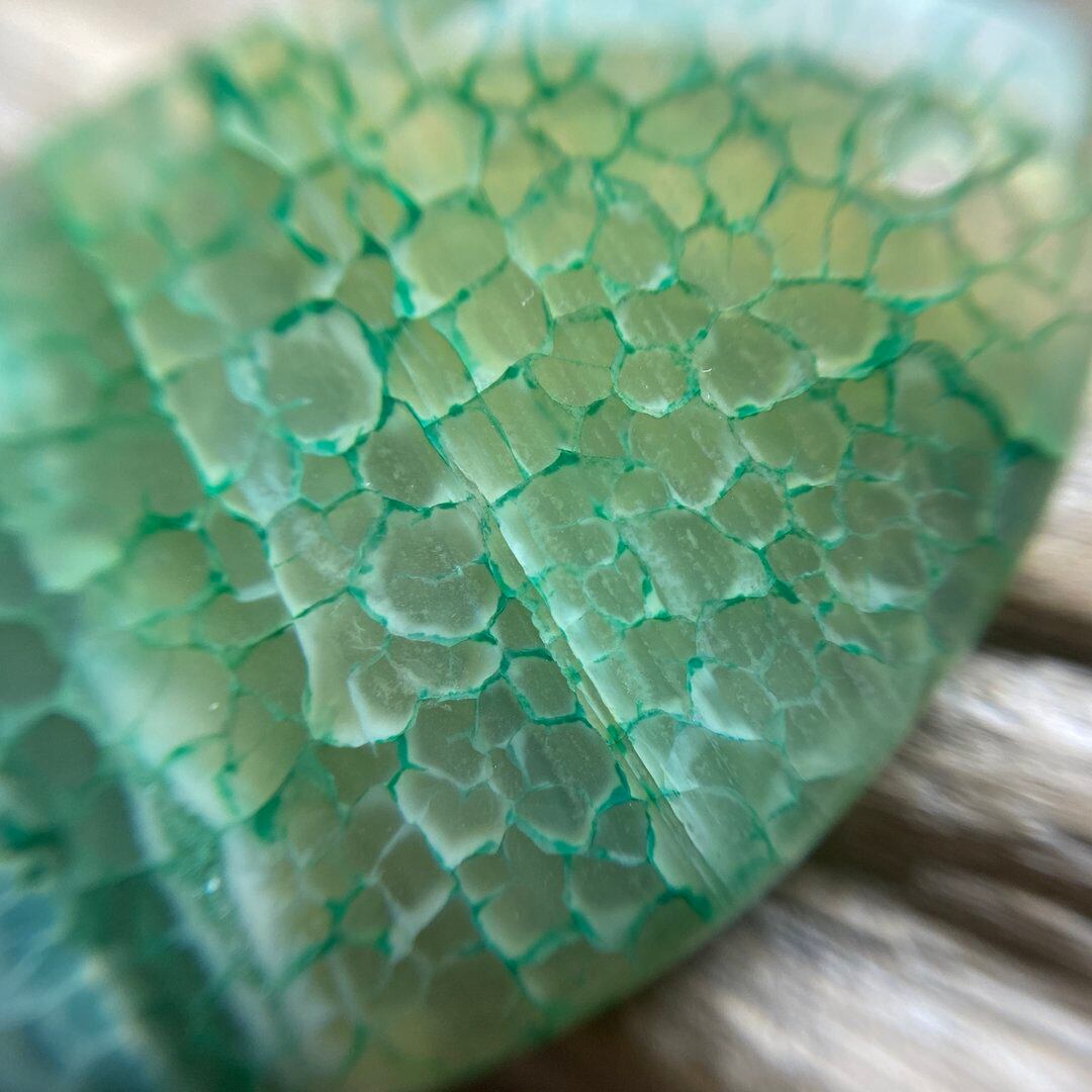 こちらのアゲートの模様は、竜の鱗の様に見えることから『ドラゴンベイン』や『ドラゴンヴェインズ』と呼ばれるクラック加工がされており、カラフルな色味は染色によるものです。