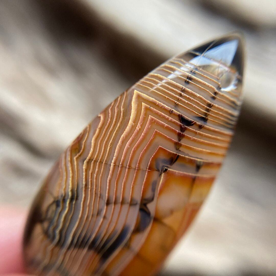 天然アゲートならではの、ドゥルージー部分、美しい曲線を描くライン、ストライプ模様などを生かしたデザインは多彩で、
